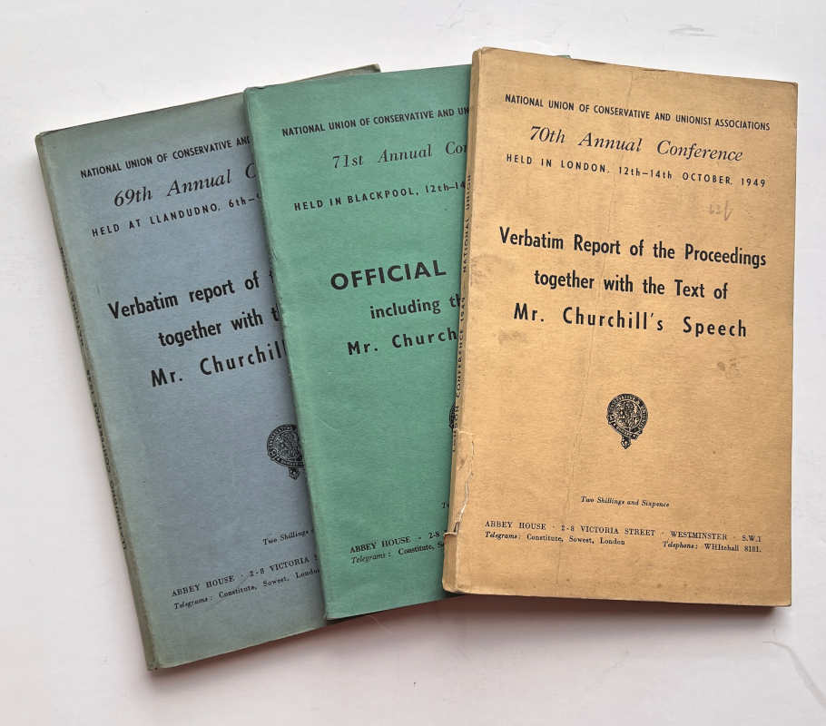 Three scarce volumes featuring accounts of the annual conferences of the National Conservative Union, with reports of Churchill’s speeches.