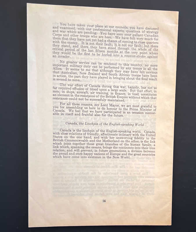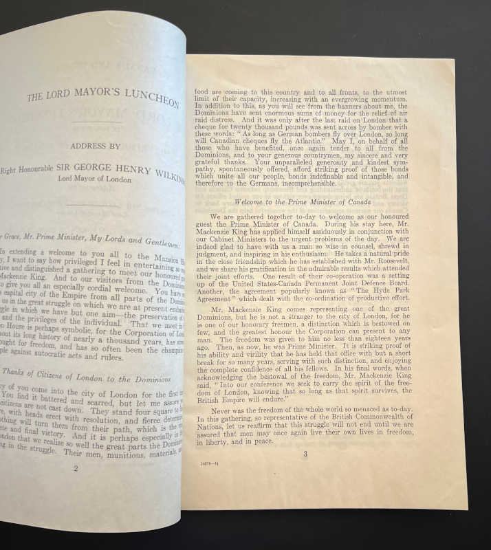 Addresses by Right Hon. Sir George Henry Wilkinson, Lord Mayor of London, Right Hon. W.L. Mackenzie King M.P., Prime Minister of Canada, Right Hon. Winston Churchill, Prime Minister of Great Britain.