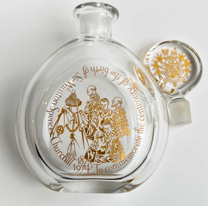 Crystal decanter gilded to commemorate the centenary of the birth of Sir Winston Churchill