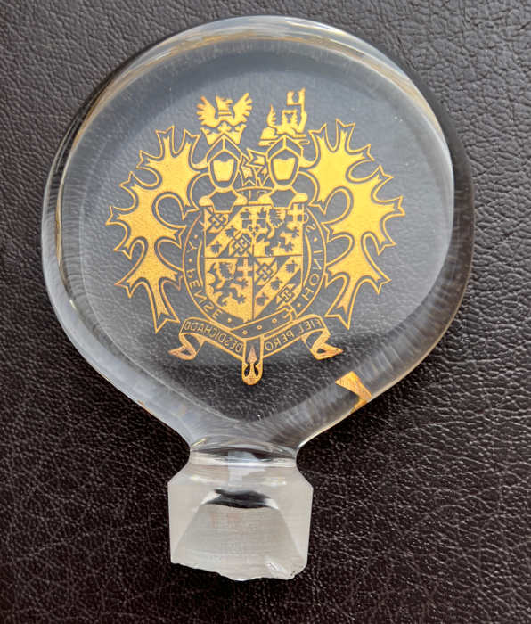 Sir Winston Churchill lead crystal decanter, by Garrard & Co.,1974.