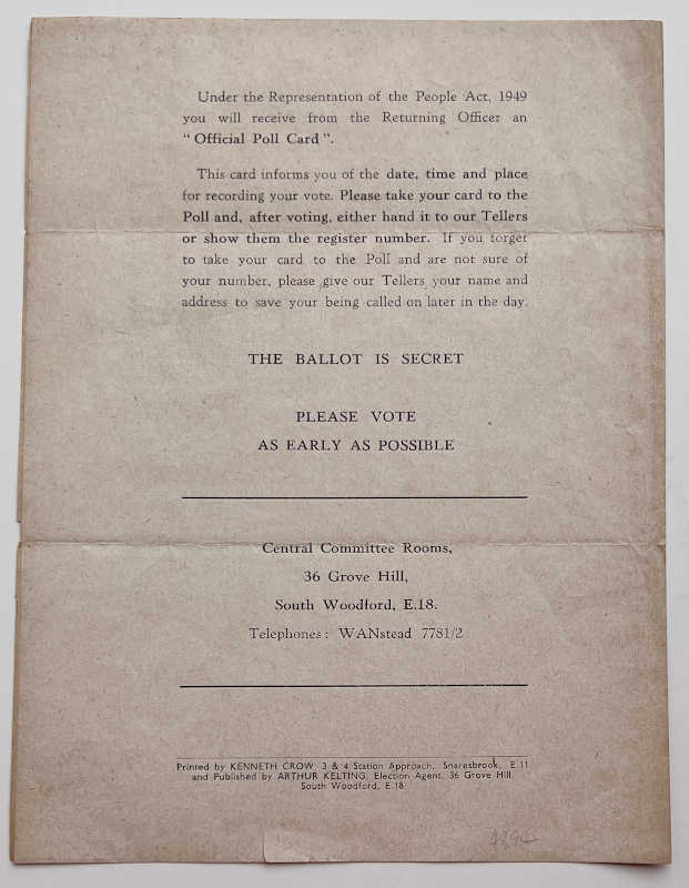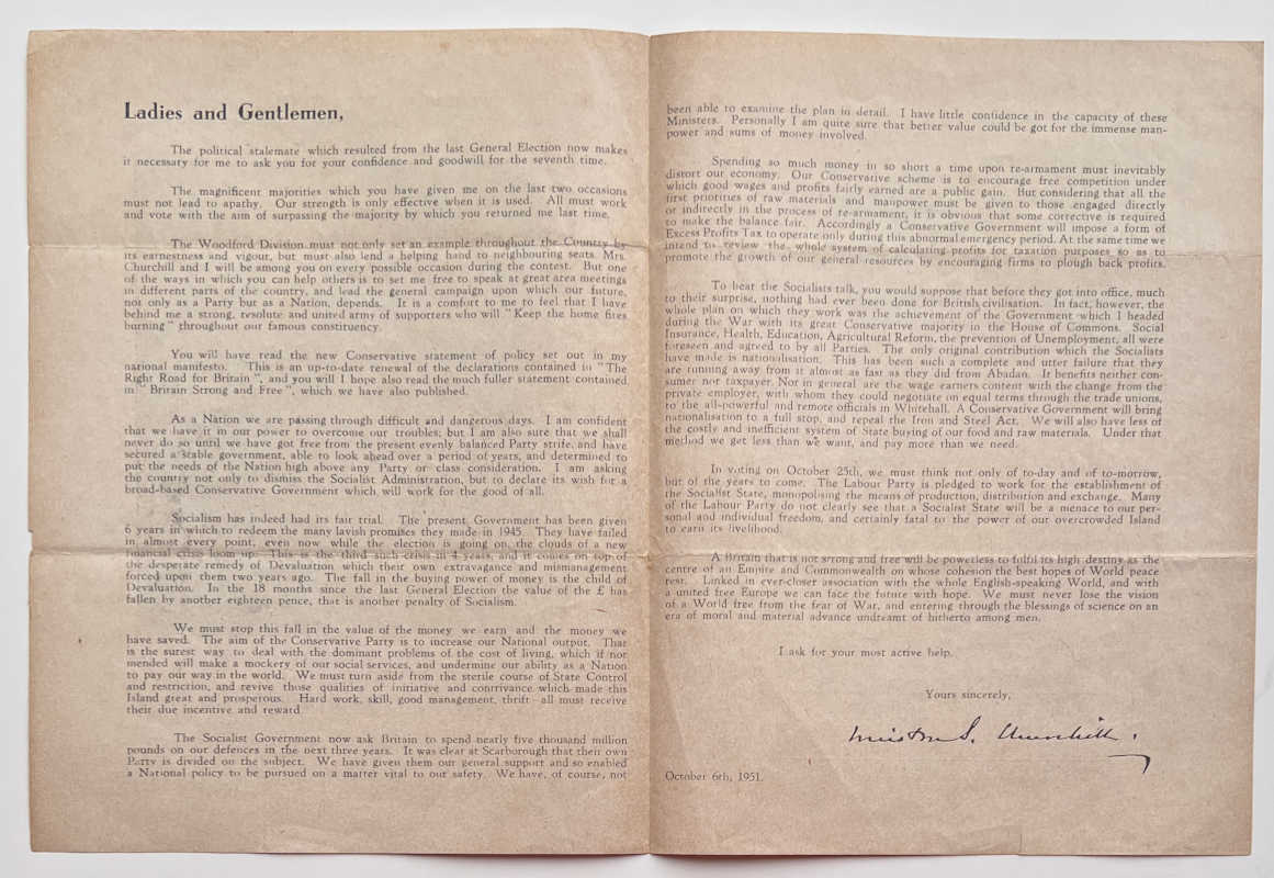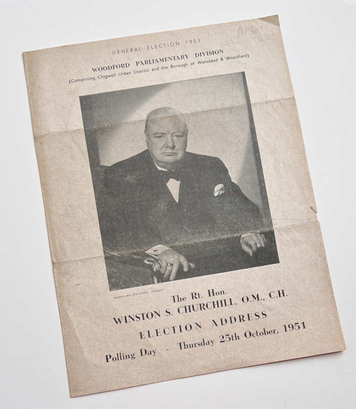 This 4-page leaflet prints Churchill’s election address to the electors in his local constituency of Woodford.