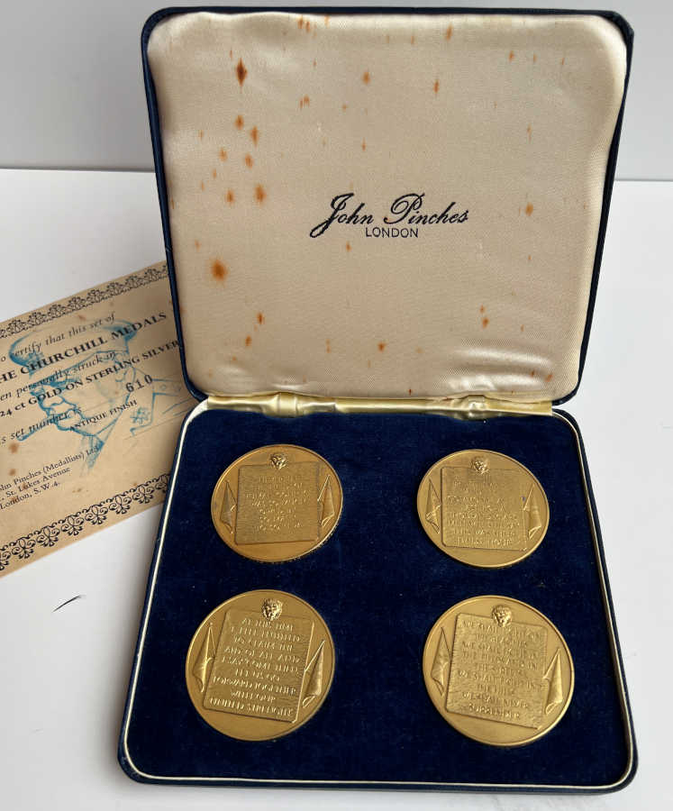 Each medal features an excerpt from a Churchill wartime speech. (see pics)