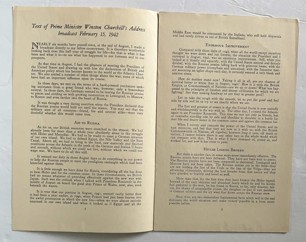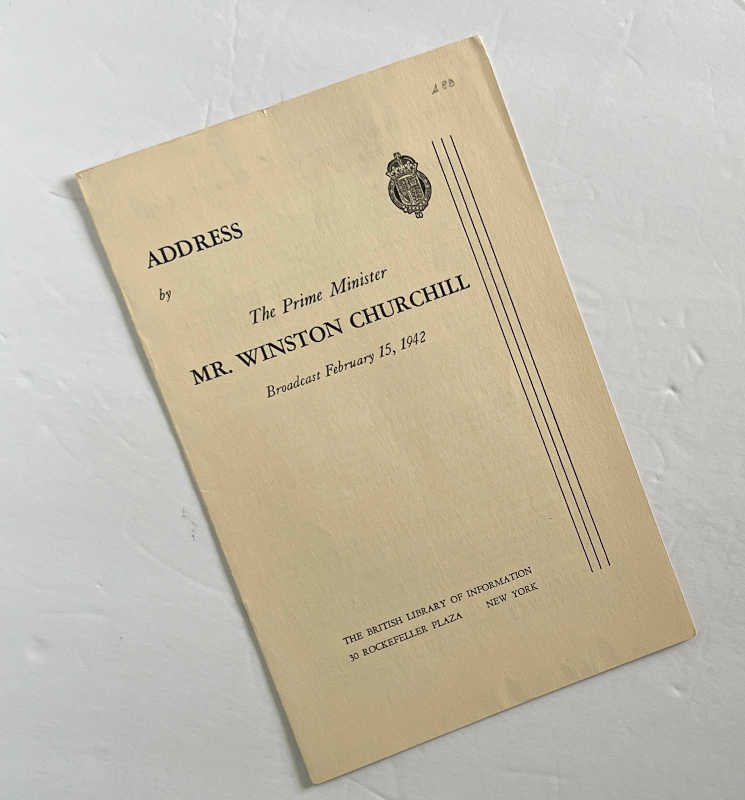 Churchill Books, Churchilliana & EphemeraFeb 15, 1942: Address by The Prime Minister, W. Churchill