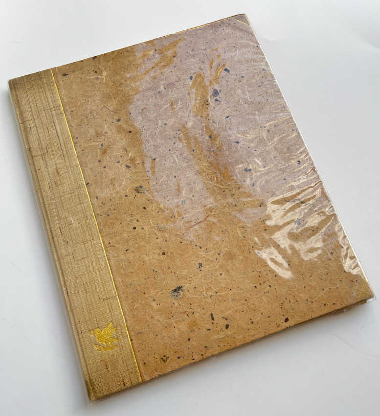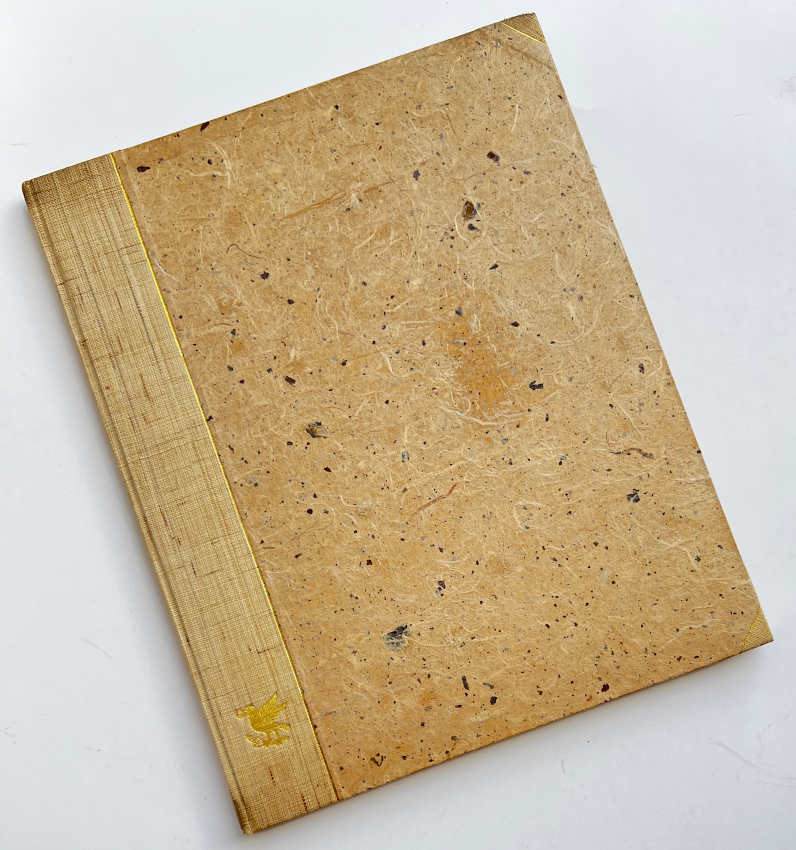 Binding is half cloth with paper covered boards, bound by Sangorski & Sutcliffe, gilt lettering to spine, top edge gilt, other edges uncut. This is a very nice copy with the original glassine dust jacket. Copies numbered 1 – 24 are printed on Barcham Green “Medway” hand-made paper this being one of them.