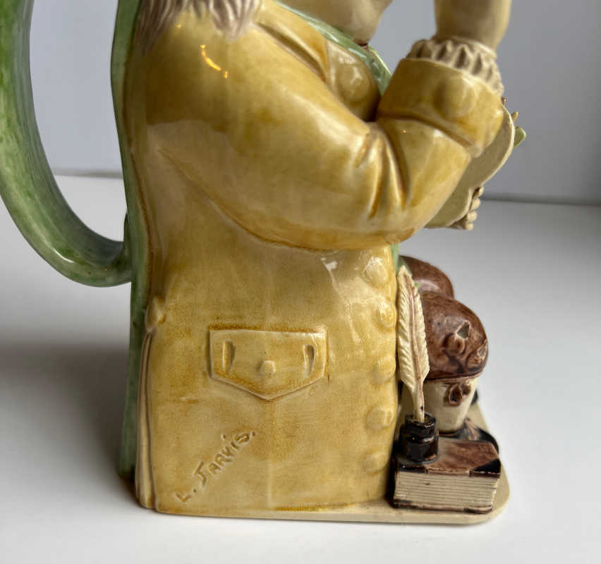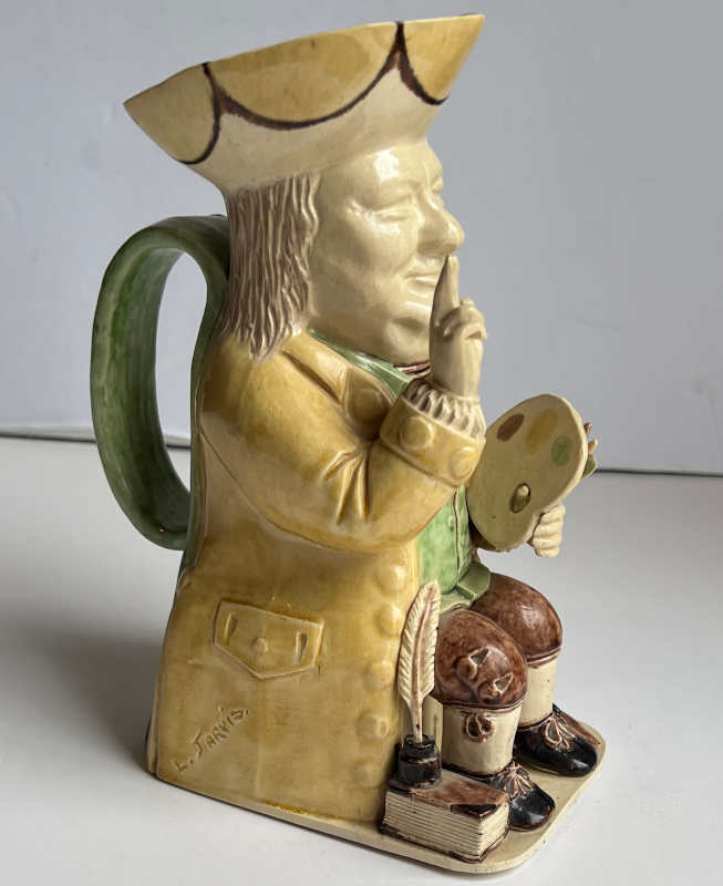 Jarvis was instructed by his employer Lord Mackintosh of Halifax to model a toby jug of Winston Churchill using pastel colours and translucent glazes in the style of earlier toby modelers.