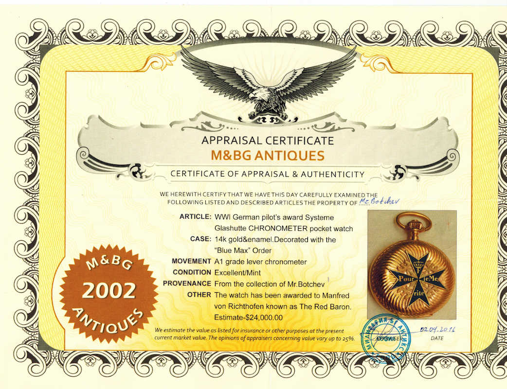 MUSEUM QUALITY POCKET WATCH formerly the property of Manfred von Richthofen.