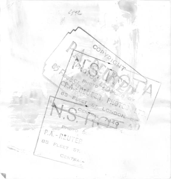 The verso bears the copyright stamp of ‘P.A. – Reuter, 85 Fleet St.,’