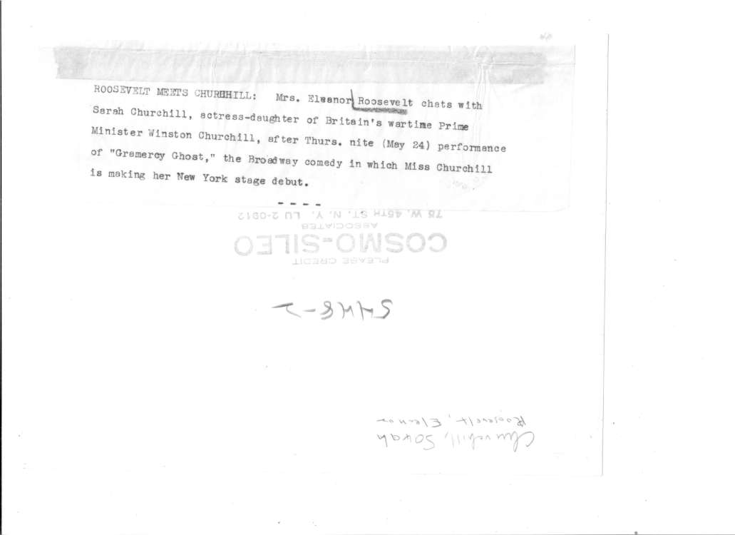 Churchill Books, Churchilliana & EphemeraOriginal Press Photograph: Sarah Churchill + Eleanor Roosevelt