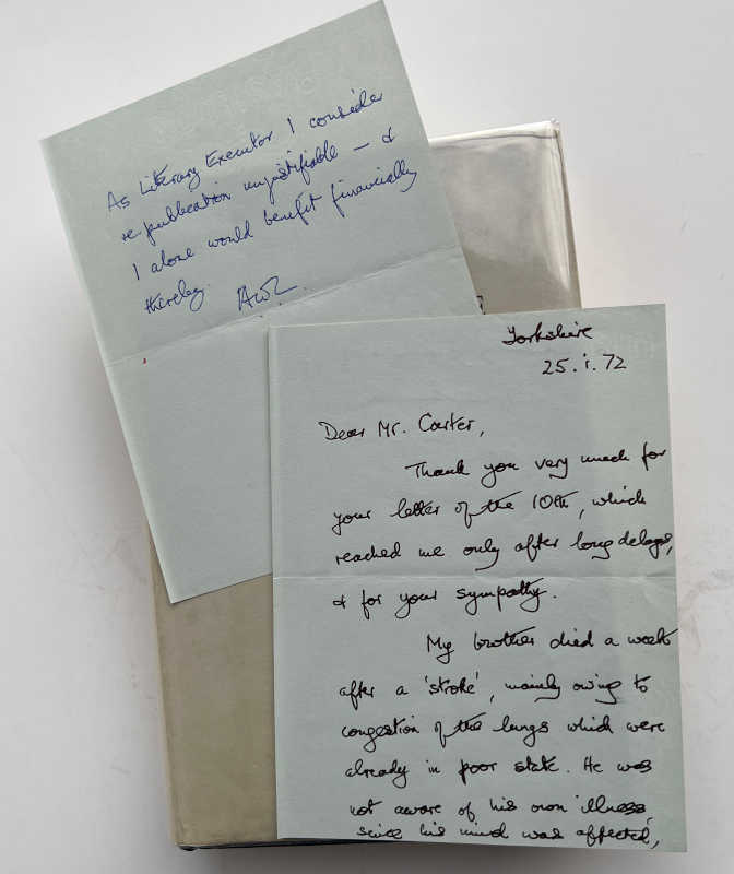 A letter laid in, to a Mr. Carter signed A. W. Lawrence. AWL