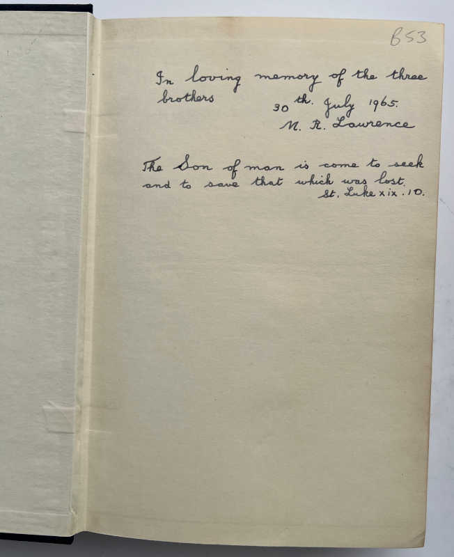 Inscription and signed letters from Lawrence’s brothers laid in.
