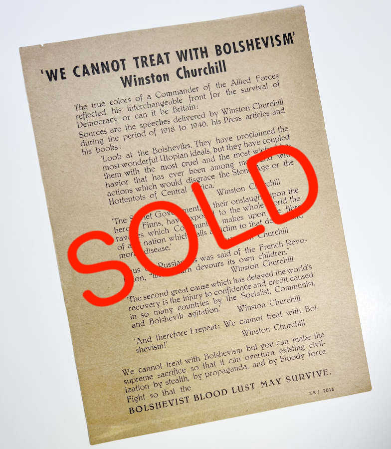 A scarce wartime propaganda leaflet. It relates to Churchill’s wartime alliance with Stalin and the Soviet Union.